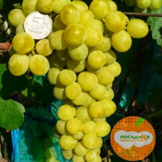 Данный сорт отличается средним сроком созревания (примерно, к сентябрю). Побеги хорошо переносят пересадку и приживаются на новом месте. Лиана покрыта темно-зелеными резными листьями и быстро оплетает близлежащие ограждения. Диаметр ствола равен 20 см. Ягоды крупные, овальной формы. Кожица желтовато-белая, с легким загаром. Мякоть ароматная и сочная, классического вкуса. Плоды можно использовать для приготовления соков и домашнего вина.